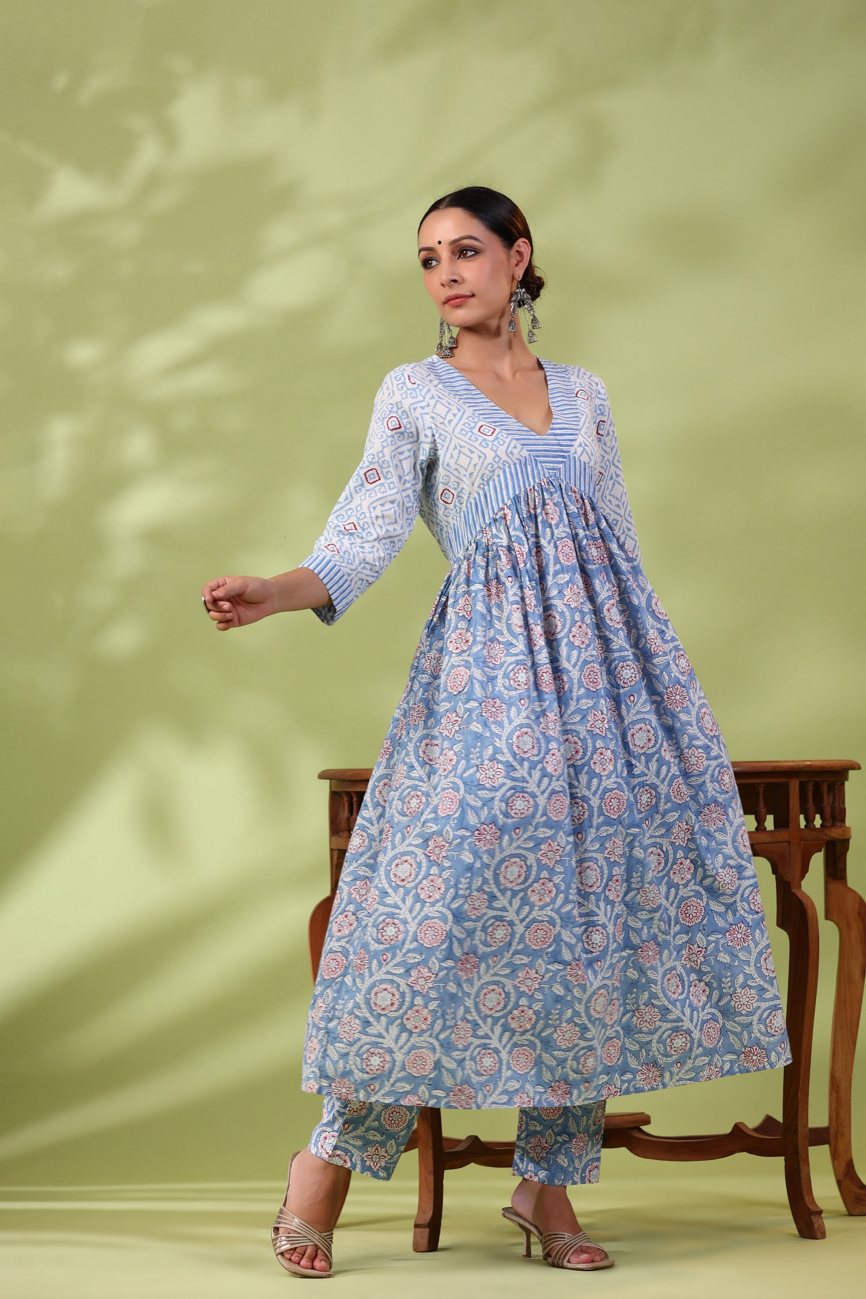 This anarkali is so beautiful! Gives a royal feel and the fabric is the softest cotton. One can't help twirling after wearing it!