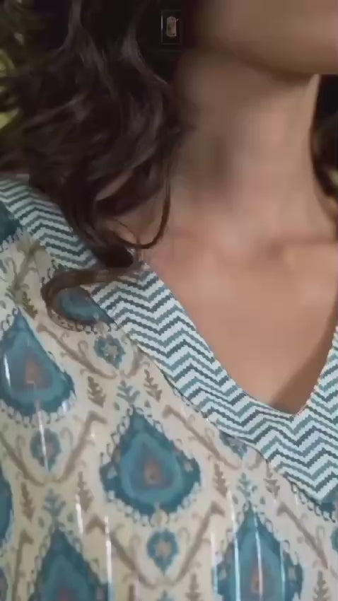 Design: Stylish V-neckline with contrasting border on the neck and sleeves for added elegance.